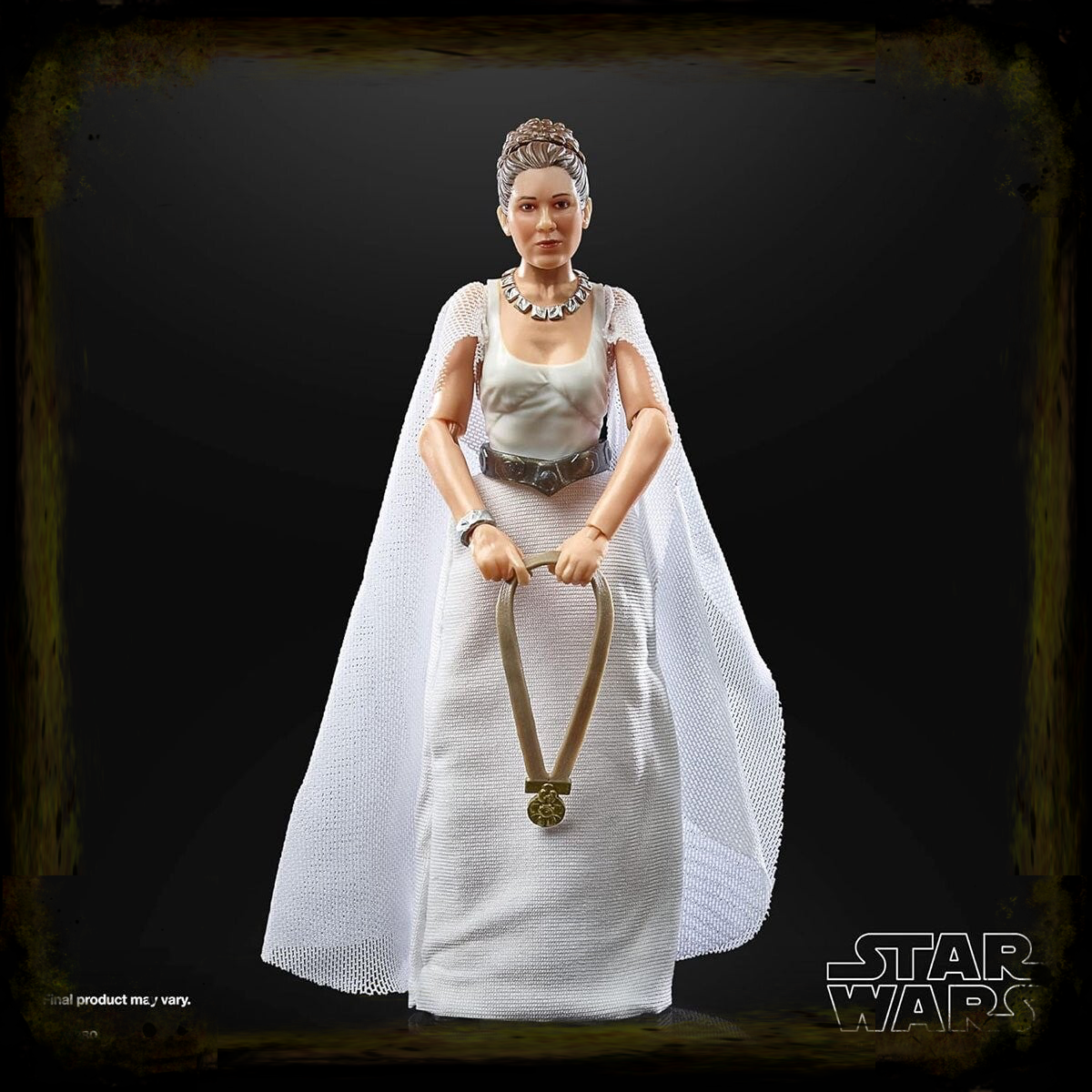 Deze figuur brengt een iconisch moment uit A New Hope opnieuw tot leven — Leia in haar ceremoniële jurk, met de medaille die zij aan de helden van de Rebellenalliantie uitreikt.