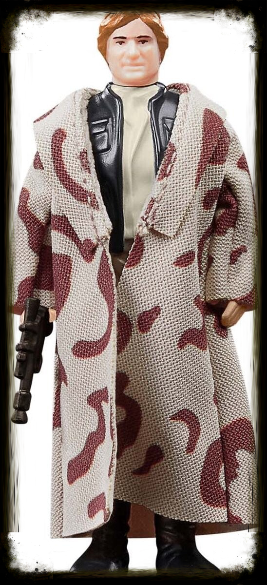 Han is gekleed in zijn kenmerkende camouflage-poncho en wordt geleverd met zijn vertrouwde blaster-accessoire. Het figuur is circa 10 cm hoog (≈ 3,75-inch) en ideaal voor zowel jonge fans als verzamelaars die houden van nostalgische stijl.
