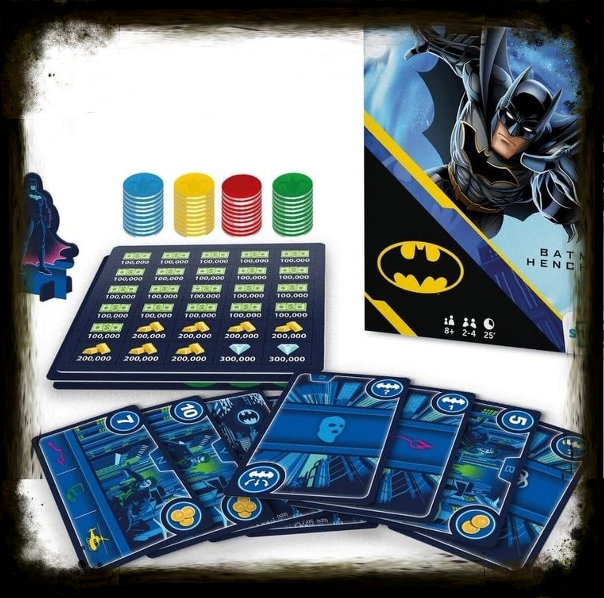 Het spel bevat 60 speelkaarten, 1 dobbelsteen, 30 geldfiches, 10 Batman-tokens, plus een Batman-standee en een spelgids – dus genoeg actie voor 2 tot 4 spelers.