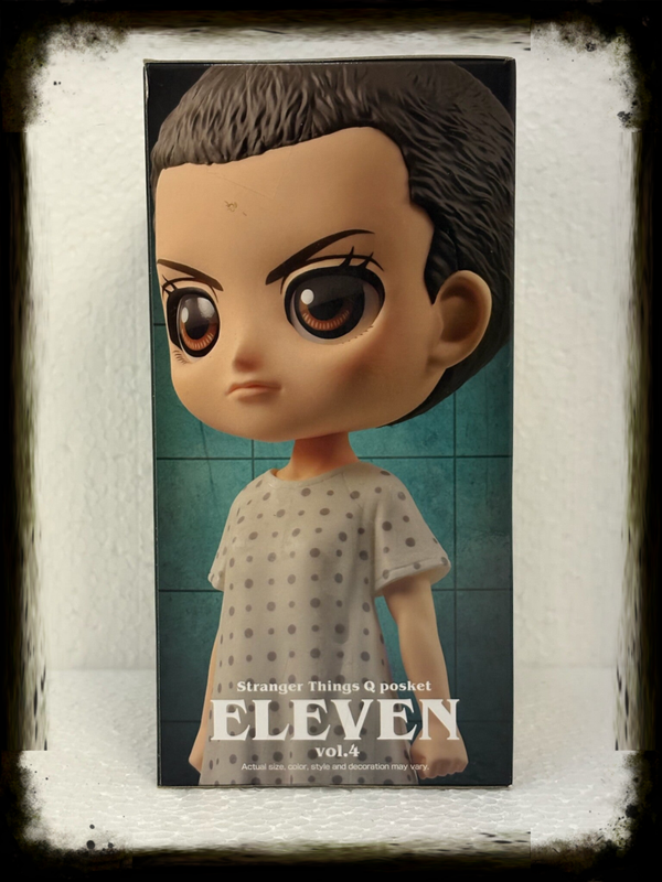 Stap in de wereld van Stranger Things met deze prachtige Q Posket-figurine van Eleven (Vol. 4) van het merk Banpresto. EAN: 4983164184839. Deze hoogwaardige collectible is gemaakt van stevig PVC/ABS-materiaal en heeft een hoogte van circa 13 cm, perfect voor display in vitrines of als onderdeel van je verzameling.